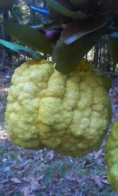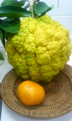 恐る恐る近付いてみると、両手の平で支えないと 持てないほどの大きさの、柑橘系とおぼしき果物 早速、モノをよく知る友人に写メールを送りましたら 即座に「鬼柚子」ではないかしら、と返事がきました この鬼柚子の木も、作業小屋の裏に父が植えてから 誰にも気が付かれないでもう何年になるのでしょう? 2〜3年前までこの小屋で作業していた人に 聞いてみても知らないというからには 最近になって実がなりだしたのかもしれません 父が居なくなっても、その意志が熟成されて 湧き出てきたような・・ 考え過ぎ? |