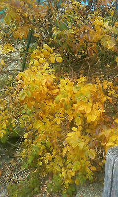 薔薇だって紅葉 ブラン・ドゥブル・ド・クーベルト 紅葉してたって、棘の鋭さは薔薇の中でも ピカイチではないかしら? 根元に藁を敷いてやろうとして 傷だらけになってしまいました モー! |