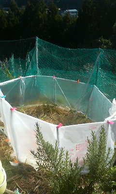 寒がりのレモンバーベナに囲いをしてやりました 中にはふかふかのワラを敷き詰めてやりました こんな感じで、昨冬も厳しい山の冬を乗り越えましたから 今年もなんとか頑張ってくれると思います |