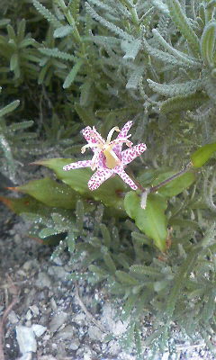 この花はな〜に? ラベンダーの足元にひっそりと咲いていました ランのような、ユリのような・・? |