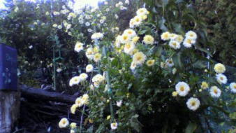 いつの間にか秋も深まり 植物たちは皆店仕舞いしてしまった ジャルダンですが 菊だけはあちこちで満開! 離れていても薫ってきます 株分けで広がったお茶用の菊ですが 元は10センチほどのポット苗でした |
