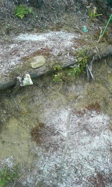 隠されていたメッセージその@ 今まで身の丈程のぼうぼうのススキで隠されていた 林道の入口付近のサツキの列 そういえば、20年近くも前に父が植えていたと 教えてくれる人がありました |