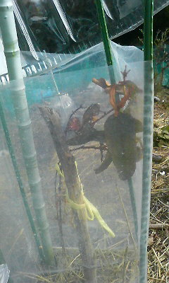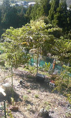 猿の仕業?と思い、低い網で覆ってみましたが それでもやられてしまいます たぶんイタチか、ウサギ? イタチなら臭い匂いに弱いと聞いて 木酢液を撒き、ナフタリンも散らしてみましたら 以後は出没しなくなりました ヤレヤレ 山の畑の天敵は 鹿や猿やイノシシや熊(キャー!)・・だけではなく 小動物たちも・・ (少しはあげるから、ちょっとは遠慮してネ) |