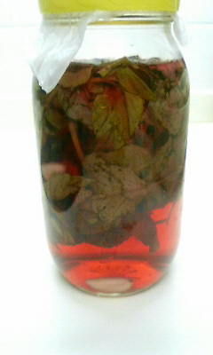 ヨーチン、アカチンはその昔どこの家の薬箱にも ありましたものね ハーブをウオッカや焼酎に浸けてハーブの成分を抽出 させたものがチンキ(7/20のブログにもあります) ハーブティーに溶け出すのはハーブの水溶成分だけですが チンキにはハーブの脂溶性の成分も溶け出しています それなら!手っ取り早く緑茶や紅茶やコーヒーにだって 薬効のかたまり、チンキを垂らせば効果満点じゃないの? そういうわけで、夏バテ解消のためのマイブームはチンキ 特にエキナセアは、免疫力アップに効果があるとして 最近注目を集めているハーブ 疲れを感じた時に飲むようにしています 煎じないといけないドクダミは、チンキにすれば 手軽なので頻繁に飲んでます ・・が、少量と言えどもチンキはアルコール度数が 40%以上のウオッカに浸けたもの 飲み過ぎないことと、運転する前には控えて頂くように お気をつけて |