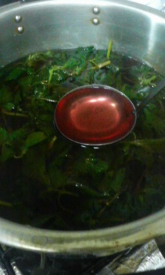 ミントを濾した煮汁に白砂糖を6カップ加えて 少しトロミが出るまでに煮詰めると こんな風に出来上がり! |