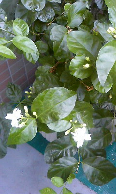 長いお盆にオセチを並べてみました 真ん中の昆布巻きと煮物の下に敷いている緑は ジャスミンの葉っぱ 見渡すところ、唯一使えそうな葉っぱでしたので ジャスミンは寒がりなので 冬季は部屋の中に入れています |