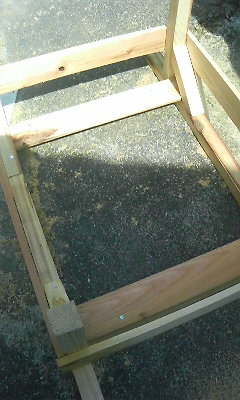 取り外し自在の、木の枠の足を作りました 座卓がはめ込めるように枠を付けて |