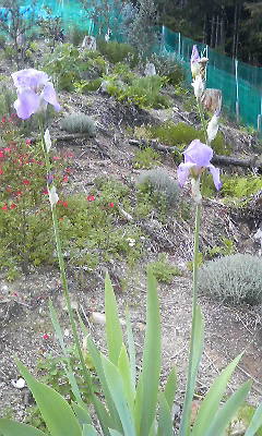 あやめみたいだけど・・ 匂いイリスが咲きました この根はポプリの香りを長持ちさせる 保留剤、オリスルートになりますが、 乾燥してから2〜3年経たないと香りが 良くならないそうで、気のなが〜いお話 |