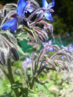 ボリジはいつでも元気満々 盛んに蜂たちを集めています |