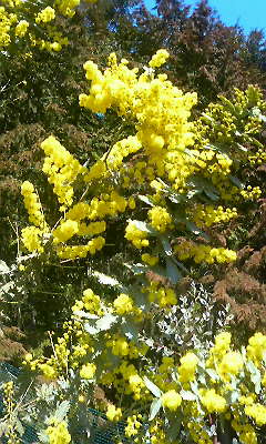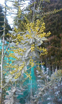 南フランスならいざ知らず、朝晩冷え込む山間僻地 の2月のジャルダンにミモザが咲きかけてきました さすがにまだおずおずと、黄色も控えめ |