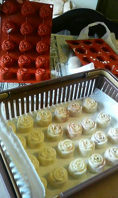 薔薇型石けんも新春デビューしました どくだみにピンククレイの二重マーブルは最初は ちょっとぎょっとしますが、熟成を重ねる内に 落ち着いてくるはずです |