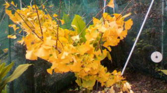朝晩の厳しい冷え込みと 日中のまるで春のような陽射しと・・ 寒暖の差の著しい今ごろの 山の気候にも耐えて ハーブたちは案外元気です ←銀杏 |