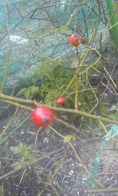 ローズヒップ ご存知 薔薇の実! レモンの20倍のビタミンC含有とか はて、どんな色になったら収穫するんでしょう? |
