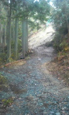 前から気になっていました箇所が 幅20メートル近く崩落して、下の林道をまたいで 土砂が谷に流れてしまいました そのために、山の上に通じる唯一の道は 土砂や滑ってきた樹木で埋まり通行不能! |
