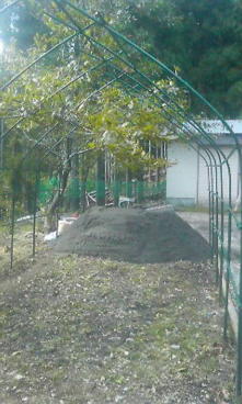 いつの間にか 製作中の手作りの庭「ルミノガーデン」に必要な 花壇の土の山があちこちに 堆肥を入れてビニールシートをかけて ただ今「熟成中」 |