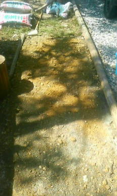 道作りにも 私の大胆道作りのご紹介です まず、砂を敷き詰めて 傾斜をだいたい水平にとります(ゼンゼンいい加減です) その上に、ジャルダン特産(?)黄色い粘土をのせて 混ぜ合わせます |