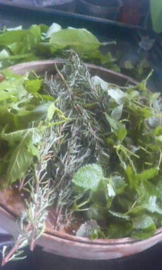 二度の台風で壊滅的な被害を受けて以来 初めての収穫 レモンバーム、ローズマリー、桑の葉っぱ(マルベリー) レモンの葉っぱ |