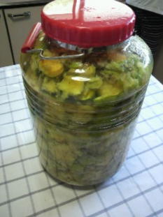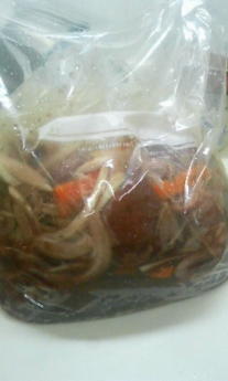 潰れたら、ヒタヒタの水を加えてガラス瓶に入れて 冷暗所に5日 |