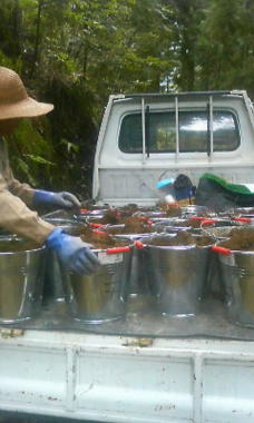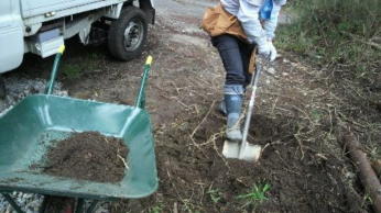 ブリキのバケツに一杯土を詰めて セッセと軽トラで運んでいるうち |