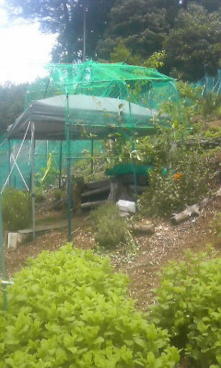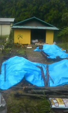 まるで天の水瓶が壊れたかのような大雨台風12号が やっと通り過ぎて、恐る恐るジャルダンの様子を 見にきてみましたら・・(絶句) |