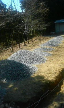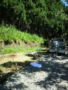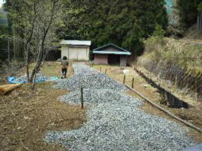 砂利を格安料金で手に入るように計らってくれた人にも 恵まれて、入り口から奥へのアプローチの目ぼしもついて ヤレヤレ 残る関門の筆頭は水の確保です |