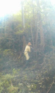 谷に倒れこんだ雑木を チェーンソーで適当な長さに切って ロープで引き上げてみれば |