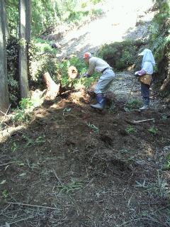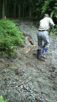 ブログの間隔がちょっと空いておりました間に・・ 実はセッセ セッセと崩落土を下に(バケツで!) 運んでおりました アリの一徹(?)、土砂の山を二つ三つと崩して ついにあと一つの山を崩せば元々あった道に通じる というところまできました(涙) 台風直後の頃 ↓ ![]() |
