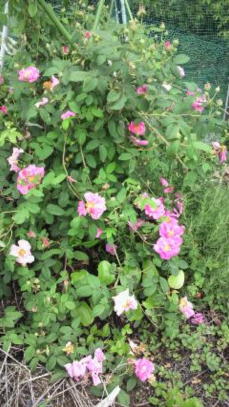 実も楽しめる薔薇、ロサ・カニナは 一重の小さなピンクの花をたくさんつける 原種に近い丈夫な薔薇です |