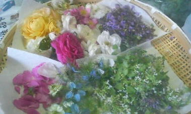 今春初のドライフラワーを作ろうと、 シリカゲールに浸け込みました 薔薇、カモミール、ラベンダー、ボリジ、 アルカネットはもうすぐ ベルガモット、ヤロウ、セージ、 ゼラニューム、ジギタリス、マロウ、ニゲラ・・ なんかはもう少し先に |