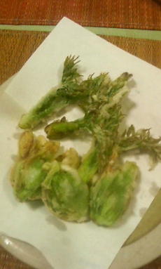 そこで、前にご紹介した、吹かし栽培のタラノメと一緒に 天ぷらにしてみました |