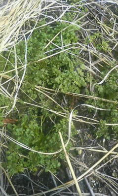 昨秋に種を蒔いて 厳しいジャルダンの冬を乗りきったチャービル 刻んでオムレツの卵に混ぜると、とたんにフレンチ! |