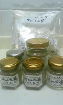 粉にしたものをふるいにかけます 細粒になるまで何度もふるいます 気をつけて作業をしても、部屋中、身体中に 煮干しの粉が舞い散ります(最大のお手間・・) |