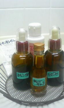 ハンガリー・ウォーター原液を化粧水用に希釈して使います 精製水で5%濃度になるように原液を薄めます (100CC作るなら原液は5CC) 保湿にグリセリンを入れ(入れ過ぎると却って皮膚から 油分を奪うので、5〜10%程度に)、キサンタンガムを ほんの少し入れてトロミを(キサンタンガムは入れ過ぎると ドロドロになってしまいますから、加減しながら) (以上はハーブ講座でお知り合いになったアロマテラピーを 勉強中の美人ママ、Kさんに教えて頂きました Kさん、ありがと〜またいろいろ教えてくださいね〜) オプションとして ハンガリー・ウォーターのレシピにはありませんが 浸け浸け大作戦のブログ(2010.6.20ブログ)でご紹介した カモミール、どくだみ、カレンデュラのチンキをスポイドで ほんの少し垂らします(保湿も美白も、これで安心!) |
