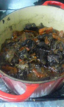 ハーブお節 今年はハーブでお節を・・というわけで 牛スネ肉の赤ワイン煮(ドーブ・プロヴァンサル)を作ってみました 赤ワインのマリネ液に肉を三時間くらい漬け込んでから・・ |