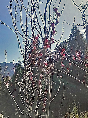 新春の山に入って山に自生している柚子を見つけました 猿が取ったか、はたまた先に人に取られたか? 手で取れそうな下の方には既に実がなく 高枝鋏でやっと届く高い枝に生っている柚子を集めました 半分はジャムに もう半分は蜂蜜漬けに |