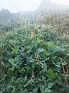 裏庭に面した土手に 今年も蓬が勢いよく延び出してきました 上の田んぼにそろそろ現れるツネ爺さんに |