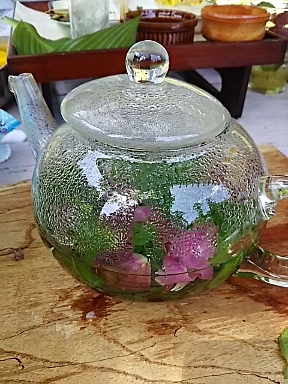 ドリンク類は 各種取り揃えてお待ちしました ミネラルウォーターにハーブ入りの 氷を浮かべたドリンクサーバーも 出番を迎えました |