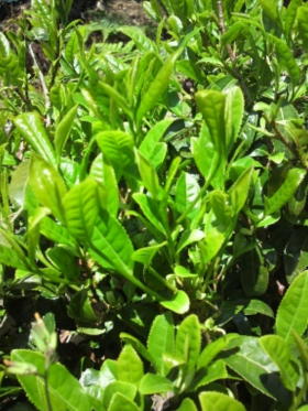 <山のお茶> 山のあちこちに 茶の木が自生していて 今が新芽の採りどき 放っておけば どんどん葉が硬くなって お茶にするチャンスを 逃してしまいます |