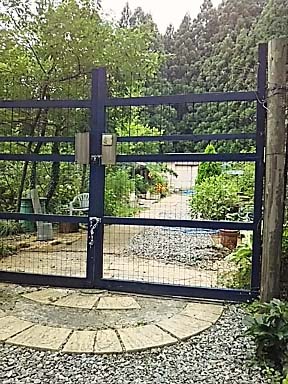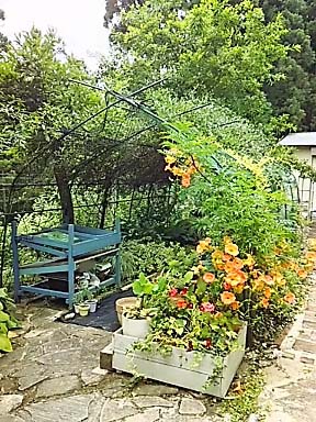 春には花盛りだった庭も木がのびて 濃い緑の庭に |