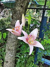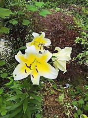 大きな目玉焼きみたいな黄色い百合は つい最近咲き出しましたが もう少し前には赤いのとピンクのも |