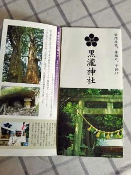 こんなに美しくて立派な佇まいの神社なのに なぜか地元でもあまり知られていない黒瀧神社に みなさん、いらっしゃい! 宮司さんにパンフレットをいただいてきました |