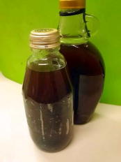 蓬に黒砂糖をまぶして漬け物器で圧縮しておきます 1週間くらいして黒い汁が上がってきたら瓶に移して 冷暗所で保存しておきます 500倍くらいに薄めて時々スプレーすると |