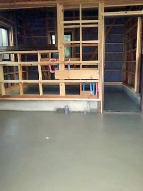 鏡のような土間の完成 ![]() 1週間ほど乾かすと白いコンクリート色に変わるそうです (こんな青っぽいままのもいいですが、何しろコンクリートなので・・・) |