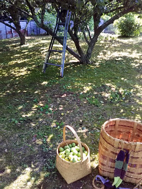 <梅もぎ> そろそろ採ってもいいよ、と隣家のTちゃんからGOサインが出ました 古い梅の木が10本近く植えられているTちゃんの梅園の梅の実 ねらってるのは私だけではないので |