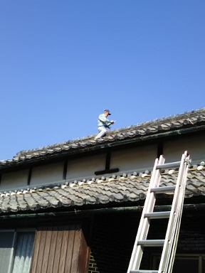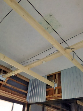 既にガタがきている天井を補強するために 何本か燦を入れに、Mちゃんが 仕上げの工事に来てくださいました |