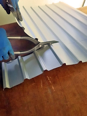 折り紙を切るのとはワケがちがって(あたりまえですが) 専用の鋼板切りの鋏を使って 堅い鋼板に細かく切れ目を入れるのは モーたいへん! |