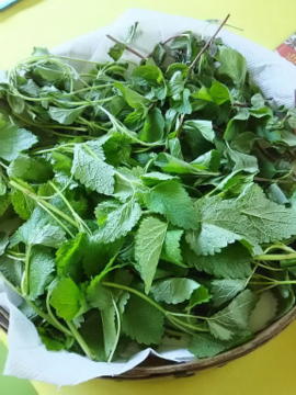 薔薇とミントを初採り あとでレモンバームもたくさん採りました |
