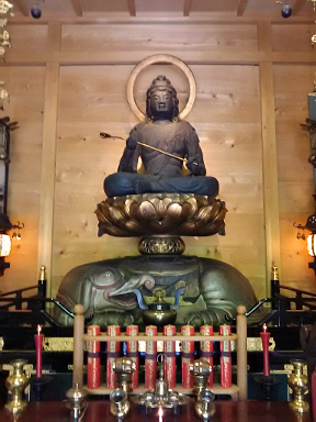 平安時代の作とされる普賢菩薩 うずくまった白象の上に座しておられます (Y美さんのお母様の丁寧な説明によると お釈迦様の両脇にはいつも普賢菩薩と文殊菩薩が脇侍として控えておられ 白象の上に普賢菩薩、獅子の上には文殊菩薩と決まりがあるのだそうです) |