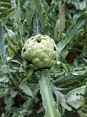 先っぽをちょっと切って レモンとローレルの葉っぱを入れて塩茹でして食べてみました これだけ大きいと台座の部分も大きくて食べ応えがあります |