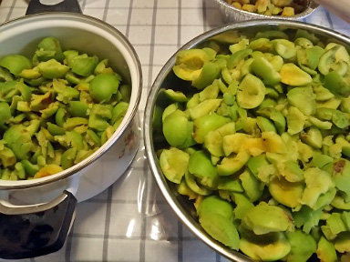 比較的熟しているのは 薄くスライスして煮てジャムに |